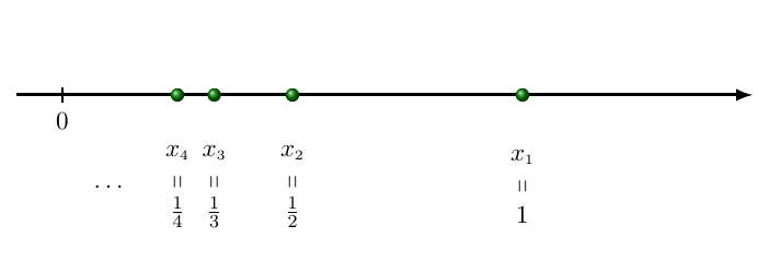 , . . .) é a imagem da função x : N → R,