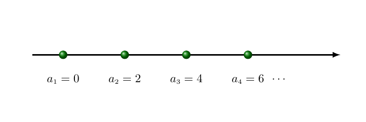 A sequência (0, 2, 4, 6, ...) é uma progressão aritmética cuja razão vale 2.